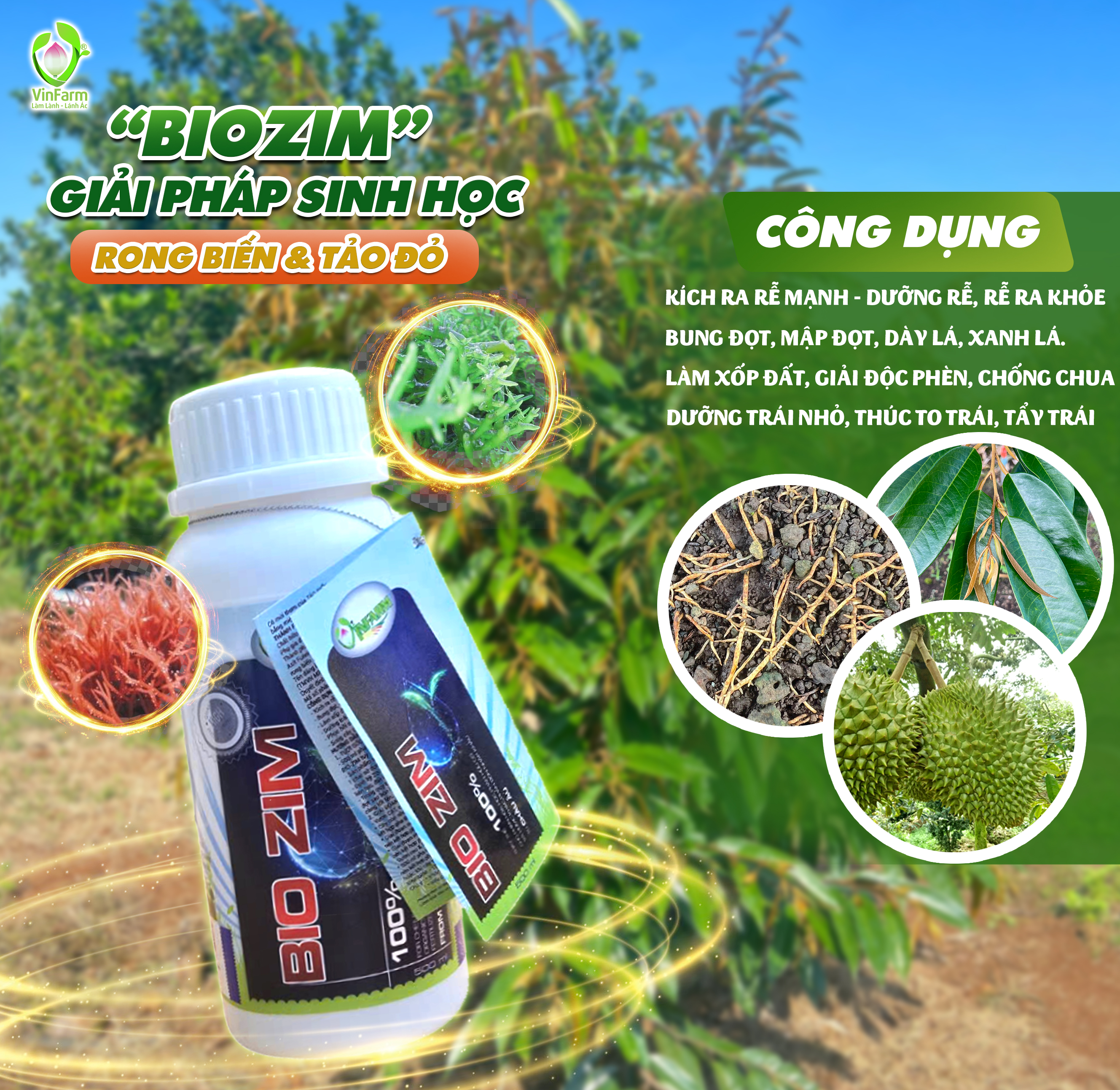 Sau khi xử lý nấm bệnh và tạo độ thoáng khí, bước tiếp theo là kích thích và nuôi dưỡng bộ rễ mới. Bio-Zim (hoặc các chế phẩm giàu Amino Acid, Humic Acid) là giải pháp tối ưu nhờ khả