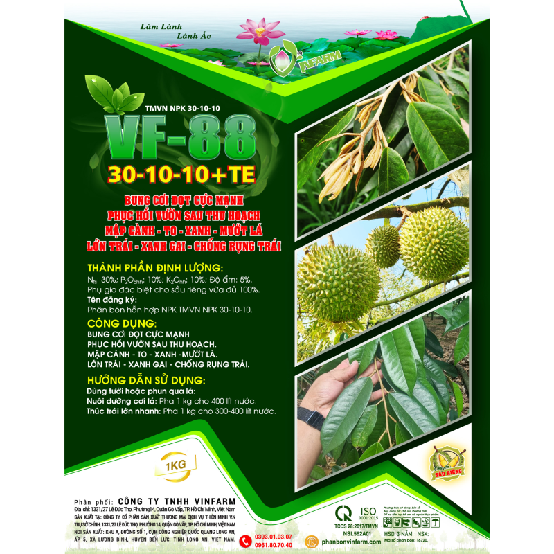 • Phụ gia đặc biệt cho sầu riêng vừa đủ 100%