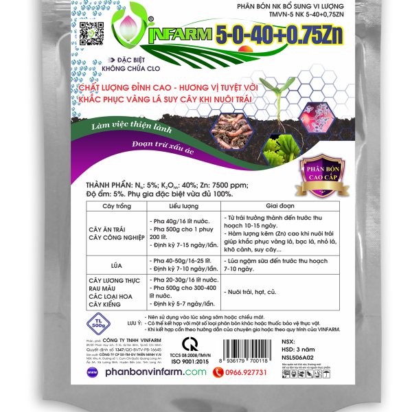 VINFARM 5-0-40 + 0,75Zn (GÓI 500G)