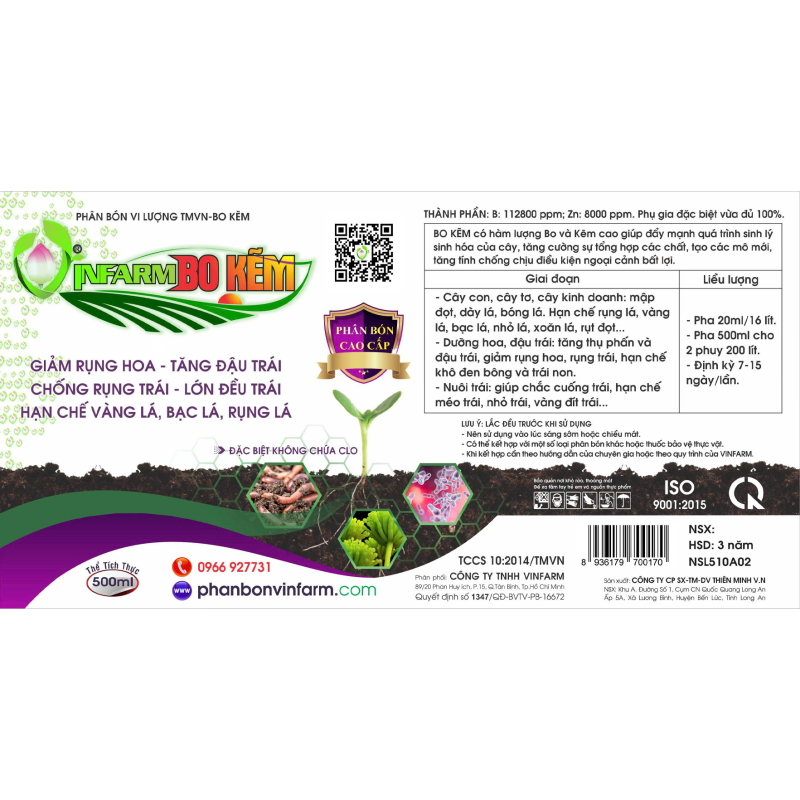 VINFARM BO KẼM là phân bón cao cấp, chứa hàm lượng Bo và Kẽm cao, giúp tăng cường quá trình sinh lý và sinh hóa của cây, thúc đẩy tổng hợp chất dinh dưỡng, hình thành mô mới, đồng thời tăng khả năng chống chịu các điều kiện bất lợi từ môi trường.