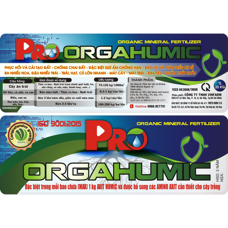 Mỗi bao chứa [MAX] 1 kg Axit Humic tinh chất, kết hợp Amino Acid thiết yếu giúp cây trồng hấp thu mạnh – phục hồi nhanh – phát triển khỏe từ rễ đến trái.