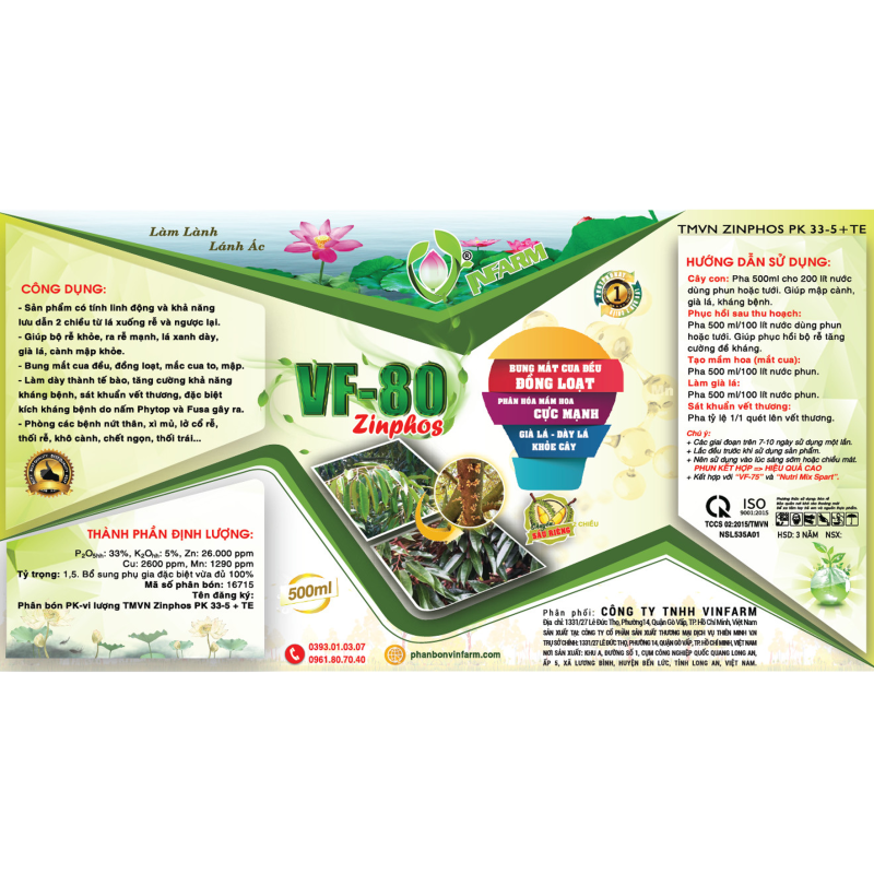 • Pha 500 ml cho 200 lít nước, phun hoặc tưới gốc. Giúp mập cành, già lá, kháng bệnh.