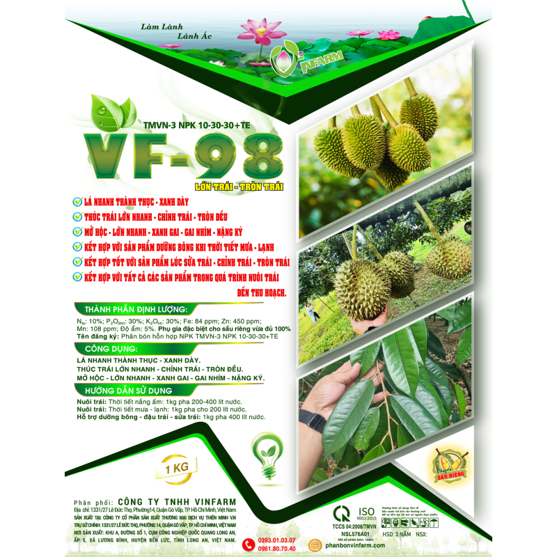 - Phụ gia đặc biệt cho sầu riêng vừa đủ 100%
