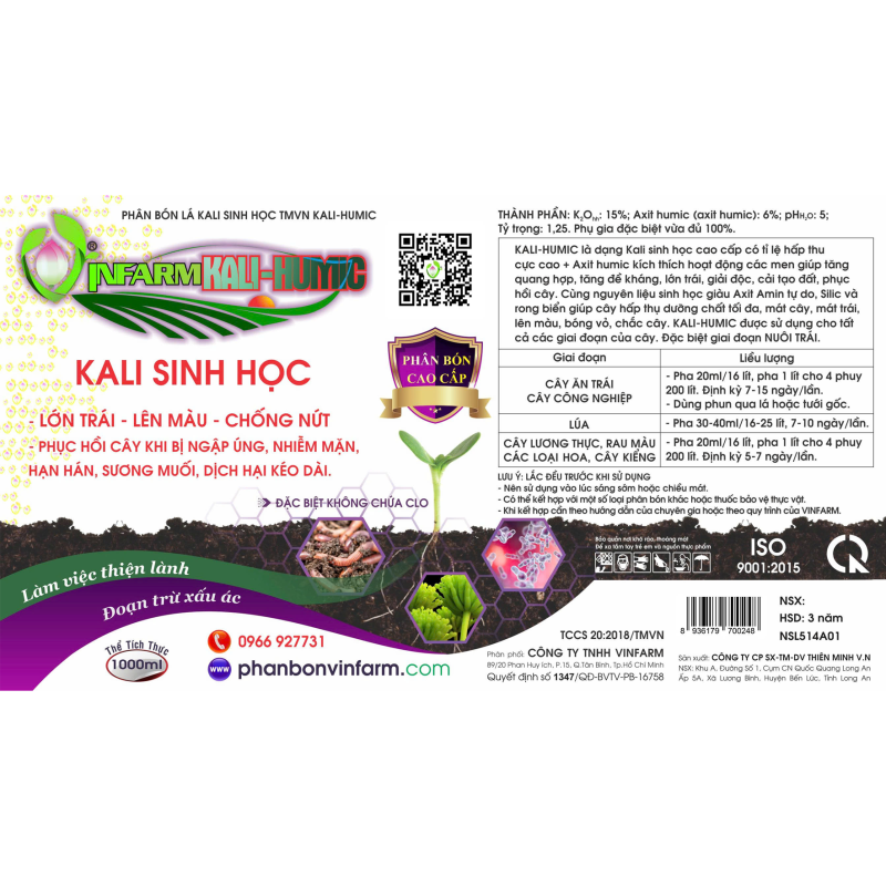 K2Ohh: 15%; Axit humic (axit humic): 6%;