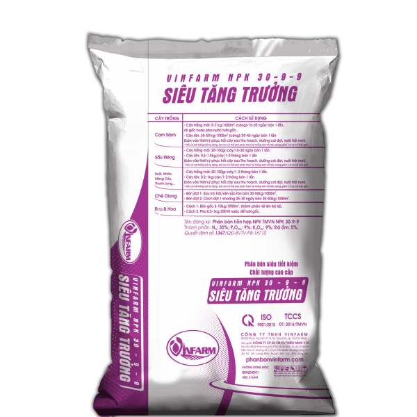 - Kết hợp NPK 30-9-9 hoặc phân hữu cơ ở giai đoạn đầu mùa để cây tăng trưởng cân đối.