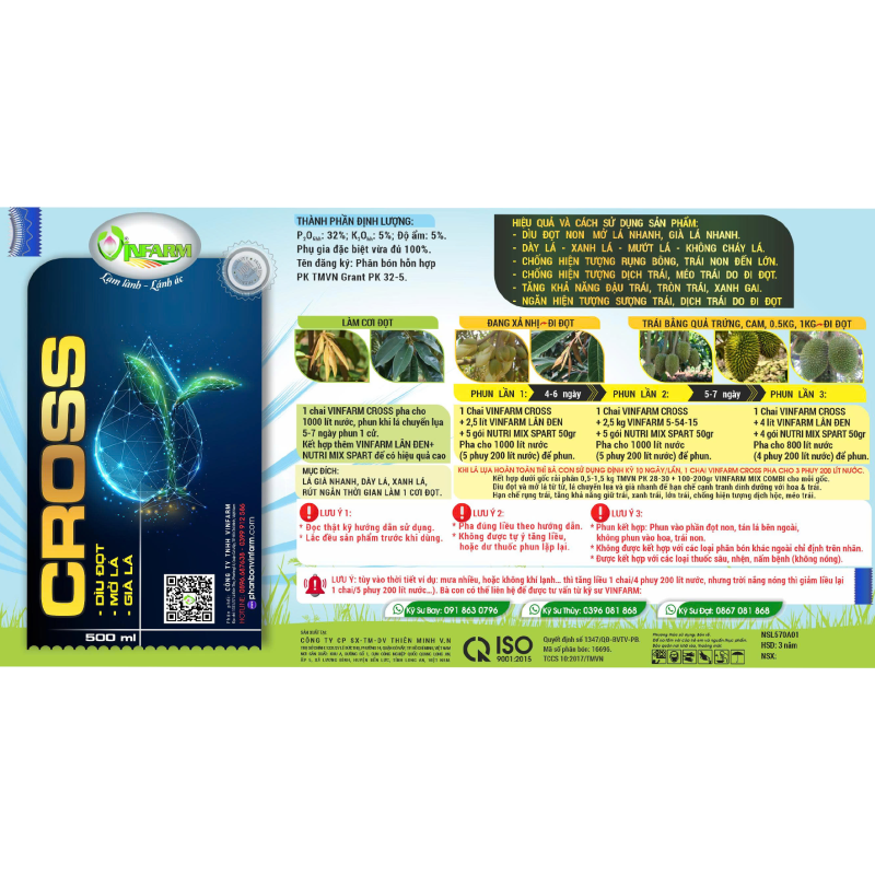 • 1 chai VINFARM CROSS pha cho 3 phuy 200 lít nước