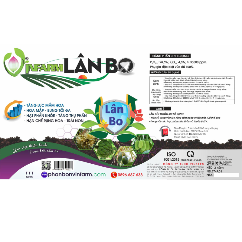 VINFARM LÂN BO là sản phẩm giúp cây tăng cường sức mạnh mầm hoa, mầm đậu trái, mang lại hiệu quả rõ rệt: