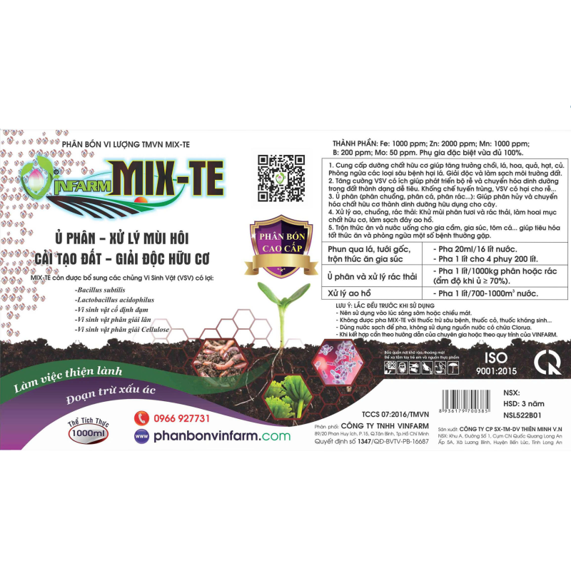 • Pha 1 lít MIX-TE / 1000kg phân hoặc rác hữu cơ