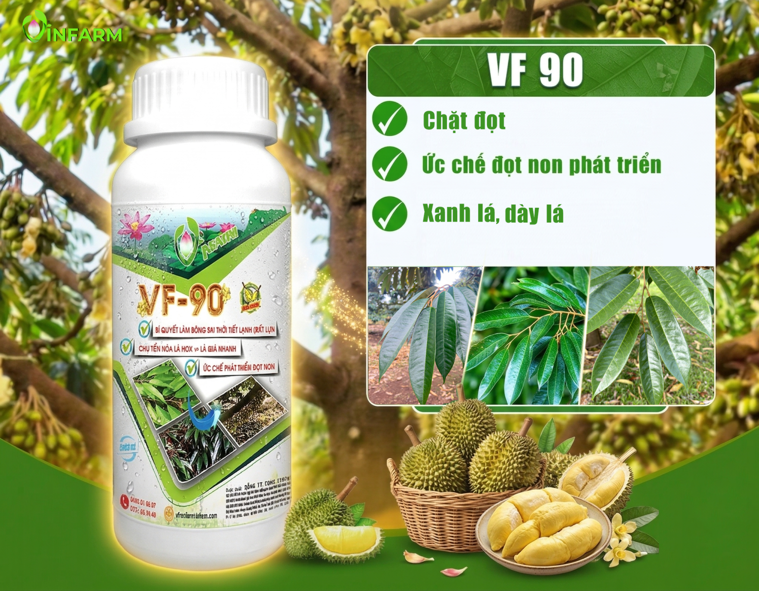 - Giải pháp: Bà con nên sử dụng VF 90 để chặn đọt, giúp cây tập trung toàn bộ nguồn lực để "chạy trái".